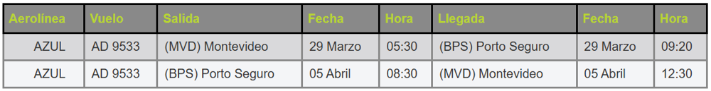 Billete aéreo Montevideo/Porto Seguro/Montevideo